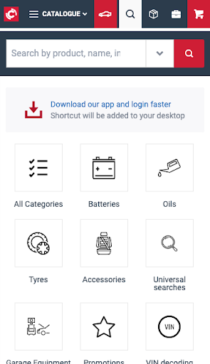 With the Inter Cars e-Catalog application, you can search and order more than 1.5 million products offered by Inter Cars. You can also immediately check the availability and delivery time of the product you are looking for!