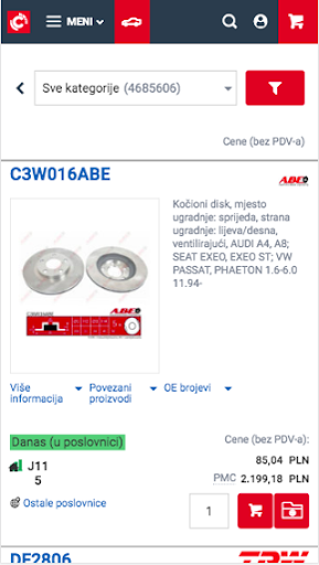 With the Inter Cars e-Catalog application, you can search and order from more than 1.5 million products offered by Inter Cars. You can also immediately check the availability and delivery time of the product you are looking for!