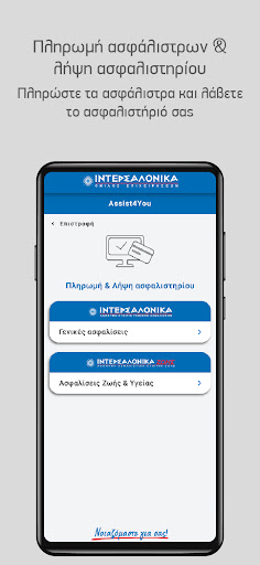 • Μέσω της υπηρεσίας Assist4You Payments πληρώνετε γρήγορα, εύκολα και με ασφάλεια τα ασφάλιστρά σας για γενικές ασφαλίσεις και για ασφαλίσεις ζωής και υγείας