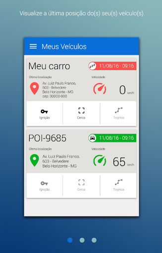 Você poderá ver aonde estão todos os seu veículos no mapa, e poderá consulta o trajeto diário, e visualizar todos os locais que seu veículo esteve no dia.