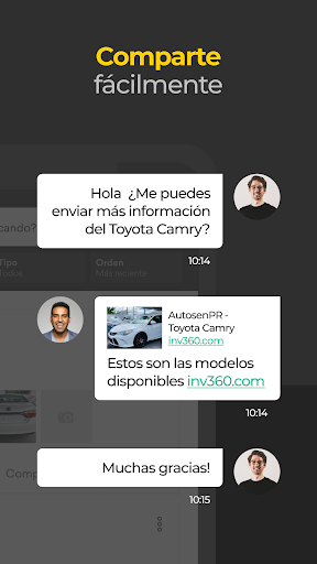 Comparte tus vehículos con potenciales compradores en tres simples pasos. Solo es cuestión de seleccionar los vehículos, agregar un mensaje y enviarlos por mensaje o correo para no perder oportunidades de venta.