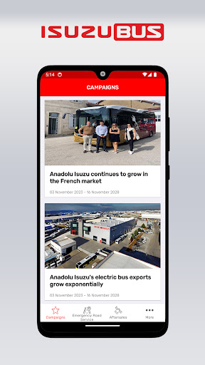 Within the ISUZU BUS app, you have the opportunity to capitalize on Anadolu ISUZU’s latest campaigns and stay informed about industry updates. Seamlessly access contact details and locations of the nearest authorized service points, along with comprehensive vehicle manuals for ISUZU buses.