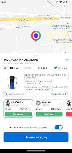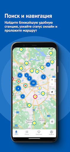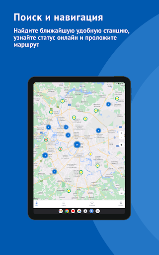 ▸ подскажет, где находятся электрические зарядные станции (ЭЗС) вокруг Вас и статус их доступности в режиме онлайн;