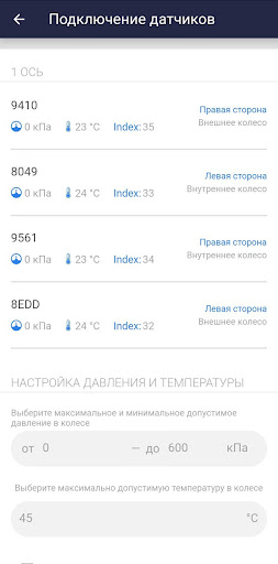 – Вывод адресов RS-485 для прописанных датчиков в концентраторе TPMS