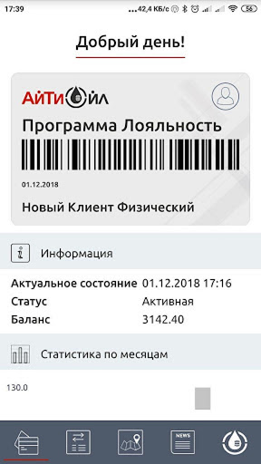 Мобильное приложение АйТи-Ойл Карточная Лояльность предназначено для работы с клиентами сети АЗС и позволяет видеть информацию по карте лояльности и о сети АЗС, которой карта лояльности выпущена, кроме того: