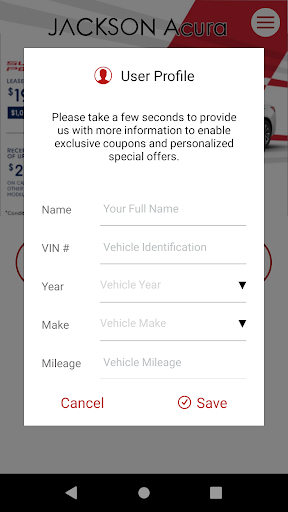 Jackson Acura loyalty app provides customers and shoppers with an enhanced dealership mobile experience. The mobile car dealership app uses background geo-location for geo-fencing and geo-targeted push notifications to provide customers with relevant specials and loyalty offers. The app also delivers a wide range of features/benefits to customers, including loyalty rewards, mobile coupons, mobile events, and a digital referral program.