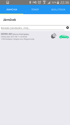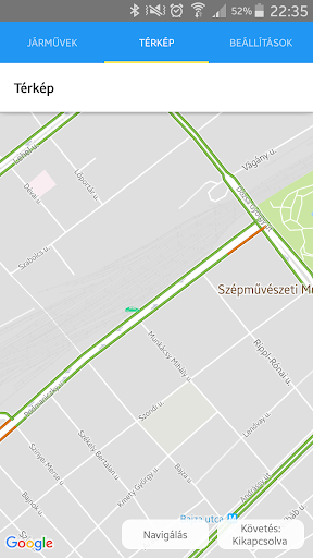 Amennyiben rákattint egy járműre a listában, a program az aktuális helyzetét jeleníti meg a térképen.