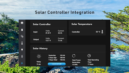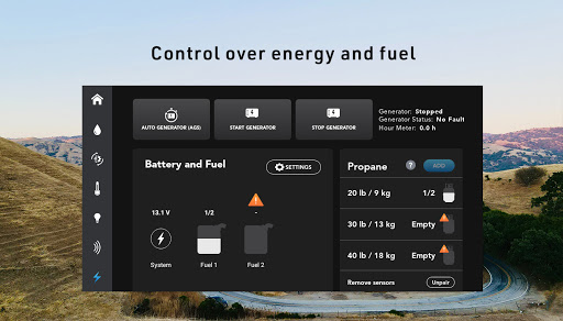 • Monitor – water tanks, temperatures, propane levels, tire pressure, battery voltages and more