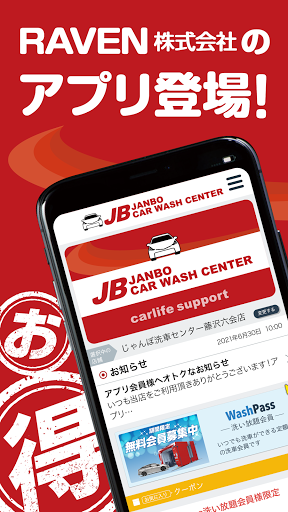当社の公式アプリ「JB洗車センター」ではアプリで洗車サービスのご利用が可能の他、当店で利用いただけるお得なクーポンや各種メニューの割引情報を配信しております。