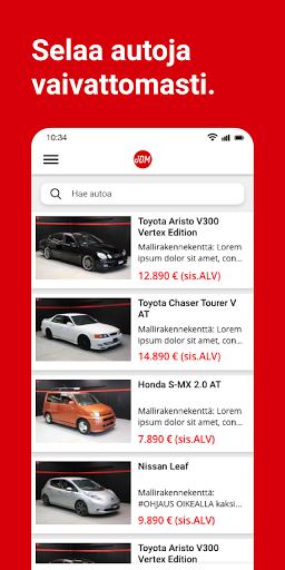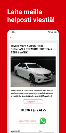 JDM Outlet sovelluksella näet silmäyksellä autovalikoimamme sekä lisätiedot ja kuvat myynnissä