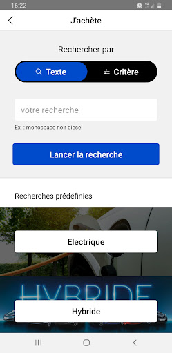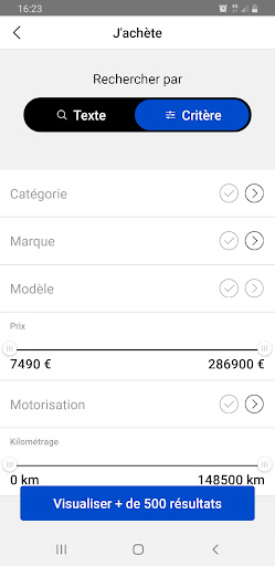 Commencez votre recherche par des critères simples (marque, modèle, budget, kilométrage…) puis affinez avec plus d’une dizaine d’autres. Ou tapez votre requête tout simplement (monospace noir diesel).
