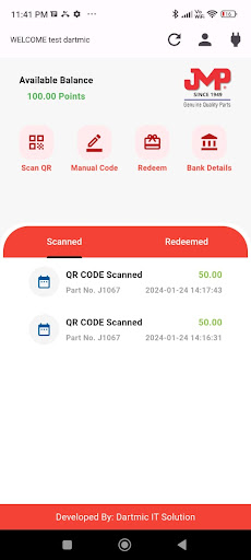 Mechanics and Retailers can Redeem their points earned by scanning of QR Codes from the application under the Mechanic/Retailer loyalty program scheme run by JMP Manufacturing Company .