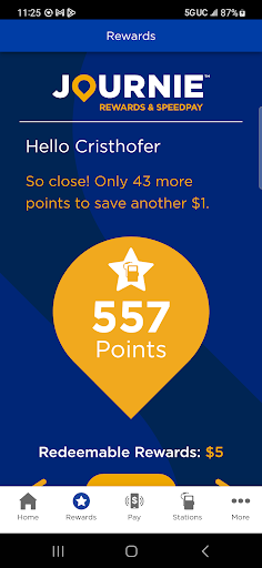 Journie Rewards & SpeedPay gives you the opportunity to earn rewards on all your fuel purchases at participating Mobil® service stations and gives you a fast, easy and secure way to pay for your fuel from your phone.