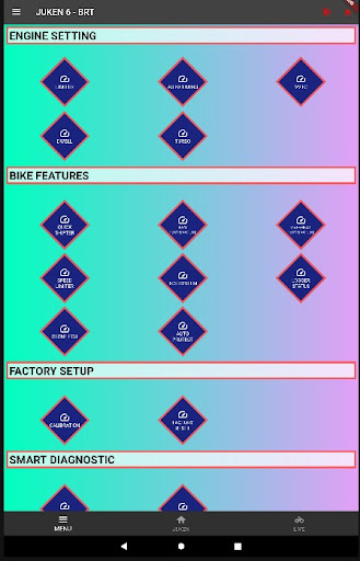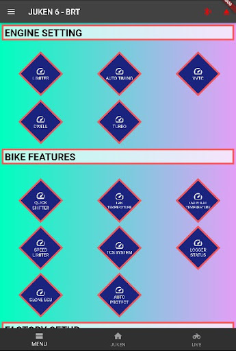 Aplikasi ini dilengkapi dengan fitur limiter, live setting, dan juga melakukan pengaturan terhadap ECU Juken 5+ keatas.