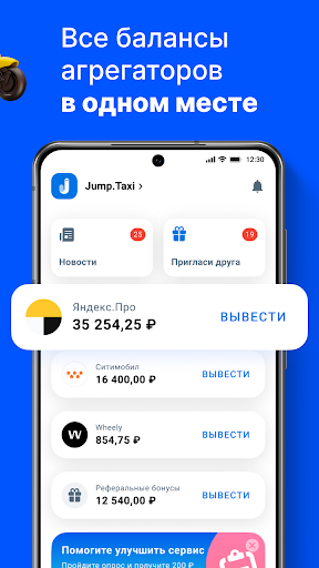 Работаете с таксопарком и подключены к Яндекс Gо, Ситимобилу, Wheely, Таксовичкоф или СберМаркету? Установите приложение Jump.Taxi и выводите заработок удобным способом: на любую банковскую карту или через СБП. Пару кликов — и деньги у вас.