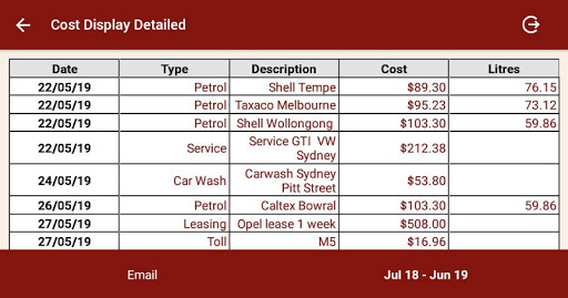 14 options for vehicle related cost types, such as, fuel, toll, insurance, service, etc