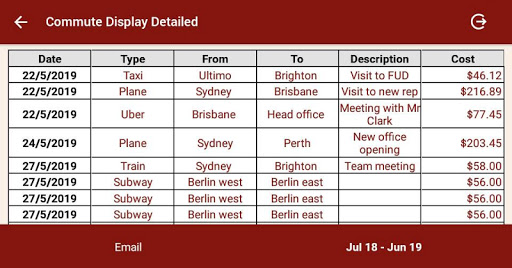 8 options for commute cost types, such as bus, train, taxi, uber, etc