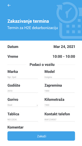 Centralizacijom podataka iz naših internih aplikacija pokušaćemo da odmah pri registraciji pronađemo tvoje ranije zakazane termine, urađene H2E dekarbonizacije i dr.