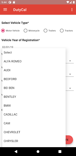 The app uses as default, latest motor vehicle CRSP list published on 30 June 2020. Though the user has an option to switch previous CRSP from the navigation menu on the to left of the app.