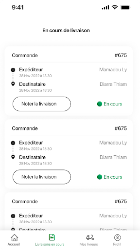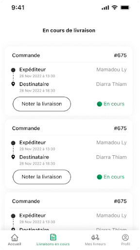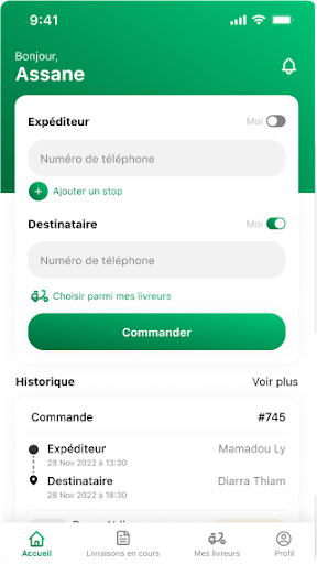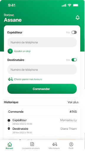 Kerby met en relation les livreurs et les clients en passant par la simple inscription du numéro de téléphone, permettant de contourner le problème lié au système d’adresse sénégalais, avec une possibilité d’ajouter un ou plusieurs arrêts entre l’expéditeur et le destinataire. Le client a également la possibilité d’ajouter dans une liste ses livreurs favoris et ces derniers ont des livraisons optimisées car ne leurs sont proposés que des courses proches de leur position.