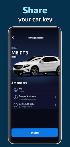 > Share car key securely with BANK-GRADE SECURITY protocol. Share car key digitally with car renters without physical keyfob exchange or with other family members in need.