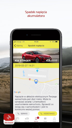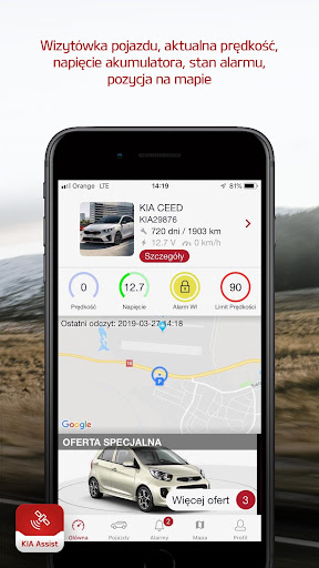 Dzięki naszemu rozwiązaniu właściciel nie musi pamiętać o przeglądzie technicznym auta – KIA Assist przypomni o zbliżającym się terminie. Kierowca ma również dostęp do aktualnej lokalizacji swojego samochodu, dzięki czemu bez problemu odnajdzie go na dużym parkingu czy w obcym mieście. Użytkownik ponadto ma możliwość włączenia w swoim aucie blokady zapłonu bezpośrednio z aplikacji .