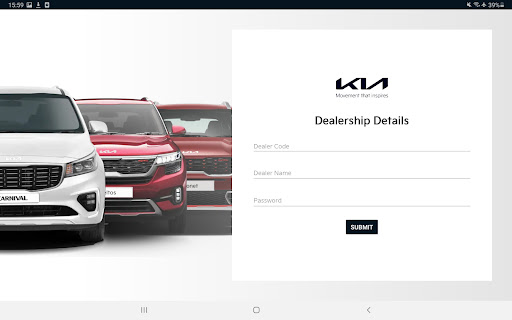 – Search pre-populated KMI Dealer Code in the login screen and give the password that is already shared with you. If you are first time using the App, it will prompt you to change the password.