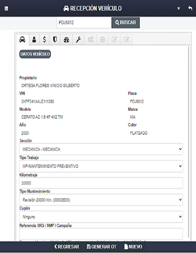 App que sirve para registrar el ingreso de autos al taller del concesionario