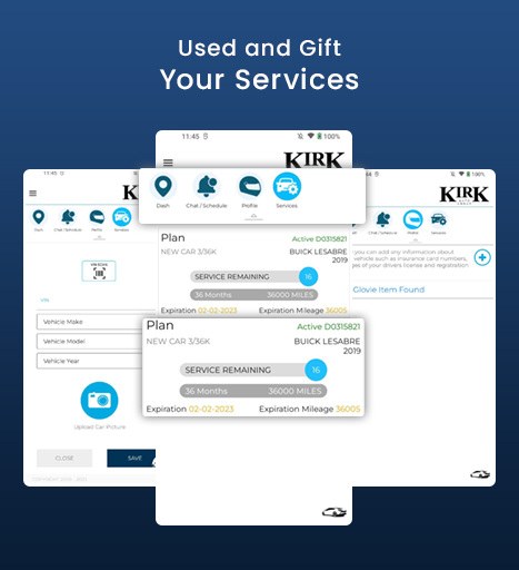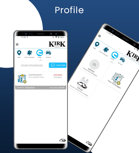 The Kirk Auto Care app provides a portal for users to: