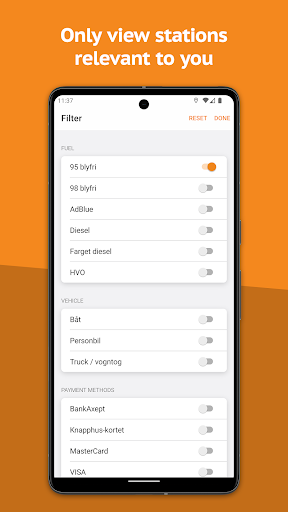 You can also use the app to find all Knapphus Energi gas stations with the products you need for your vehicle.