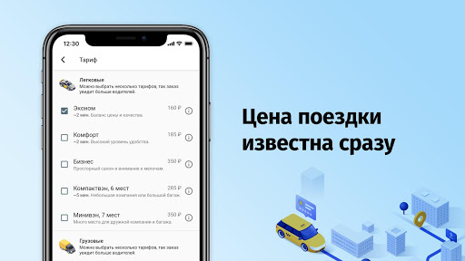 Приложение совмещает в себе все функции для удобных и выгодных поездок по городу, на вокзал или в аэропорт. Такой способ заказа значительно экономит Ваше время и ускоряет процесс подачи автомобиля.