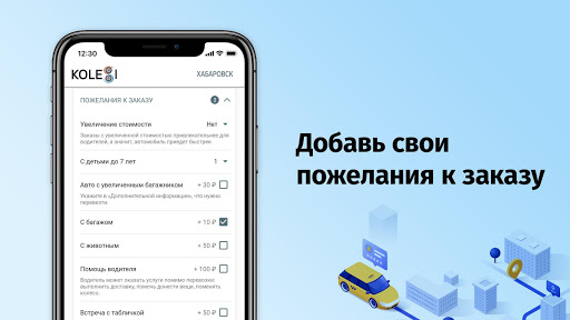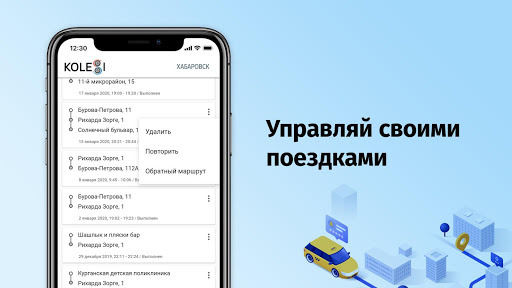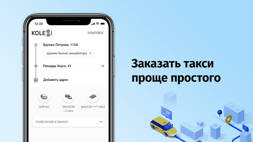 Мобильное приложение KOLESI – это простой и современный сервис, который позволит вам заказывать поездку на автомобиле без разговора с оператором.
