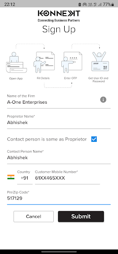 Self On Boarding: Any channel partner can download the mobile from the Play Store and register using just mobile number. Unique User ID & Password is sent upon successful registration.