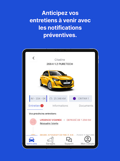 L’application vous indique vos contrôles techniques à venir ou vous alertes sur vos futurs entretiens à venir.