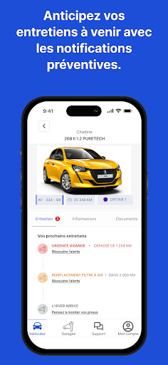 – de recevoir des alertes pour vos entretiens à venir et sur les contrôles de sécurité réguliers de votre voiture.