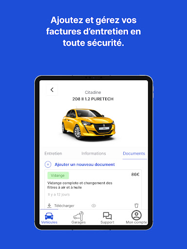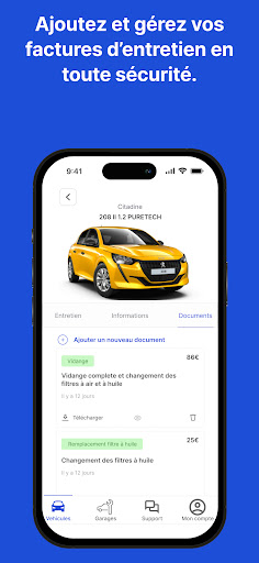 – d’ajoutez et gérez les factures d’entretien de votre véhicule.