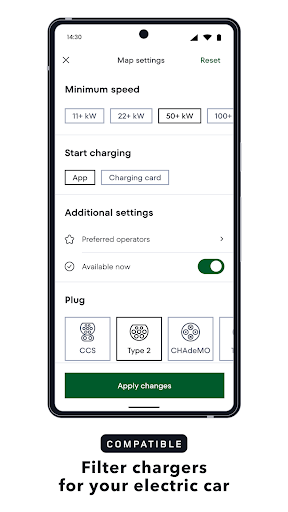 – Detailed charging location view with info on the available connector types, power, and price; address, opening hours, and distance from current location