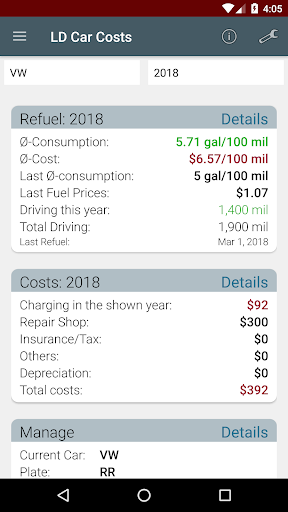 With this app it is easy to get an overview of the costs of the car or any vehicle. Several vehicles can be managed and the cost types can be expanded.