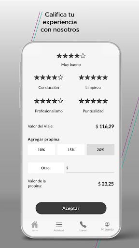 – Califica tu viaje y si lo deseas deja propina al chofer.