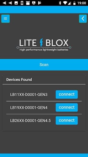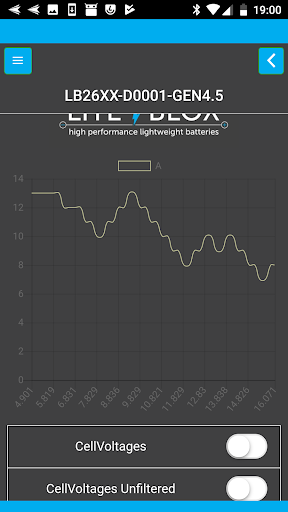 The APP for diagnostics on the LITE↯BLOX batteries with WPAN Interface.
