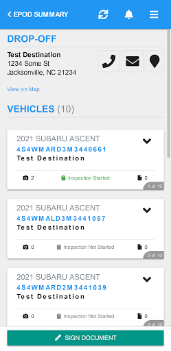 This application allows drivers and carriers to manage their work orders and create inspection reports. Drivers can complete vehicles inspections, sign inspection reports, scan VINs, take pictures of vehicles, and complete proof of delivery documents.