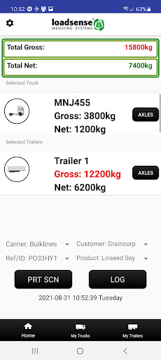 Weights can either be displayed in the app in kilograms (KG) or pounds (LBS), and will be shown in red if the maximum calibrated weight of your vehicle has been exceeded.