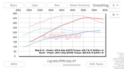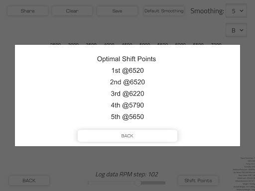 From the torque curve, the app is also able to determine the optimal gear shift points to ensure maximum acceleration. This makes sure you know when to shift, so you always have the most possible power at the wheels.