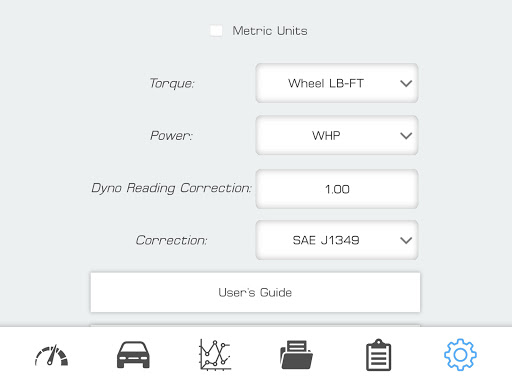 The dyno app requires some data about your vehicle. You’ll be asked to set values for the following: