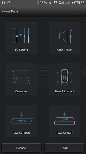 After connecting Car DSP Amplifier to the App, user can tune up sound, like EQ, Crossover, Noise gate, phase, bass, Time Aligment