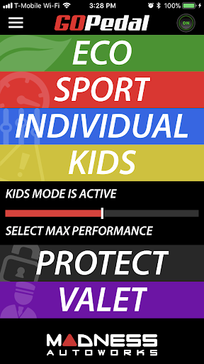 Custom: Set up a custom map for your spouse, child or anyone else using your vehicle. You have full control of how the throttle will work while someone else is using your vehicle