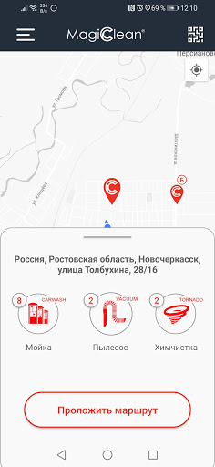 – увидеть на карте расположение и статусы автомоек самообслуживания, позволяющих воспользоваться данным приложением;