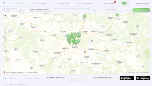 – Через раздел “Часто задаваемые вопросы” Вы можете ознакомиться с некоторыми подсказками по приложению, зарядке и оплате;