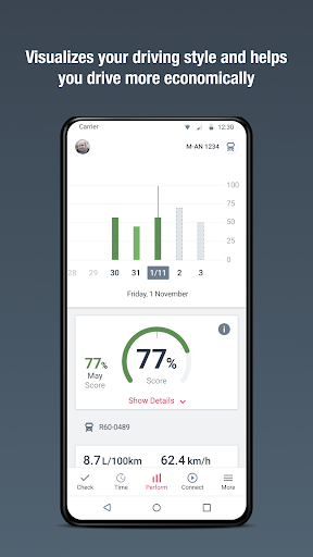 The MAN Perform service must be booked for the vehicle via the RIO platform Marketplace to be able to use the individual driving style analysis.