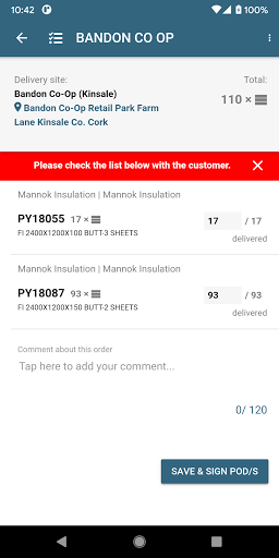 – Confirm delivery (including customer signature)